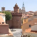 Elegance Castillet - Plein Centre Proche Gare Bus Et Transports - Ideal Couple Ou Pro - Moderne Et Confort - Offre Speciale appartement biedt uitzicht op de stad en heeft een zitruimte uitgerust met airconditioning. Dit appartement biedt 1 badkamer. Daarnaast zijn er een haardroger en handdoeken aanwezig in de badkamer.